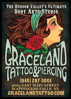My oldest son, Richard, told me to check out Graceland Tattoo in Wappingers Falls, about 20 minutes from Poughkeepsie—yay! no schlepping! I went to the website, checked out the artists’ work, saw that they were very decently mixing color and grey shading, went to the shop.